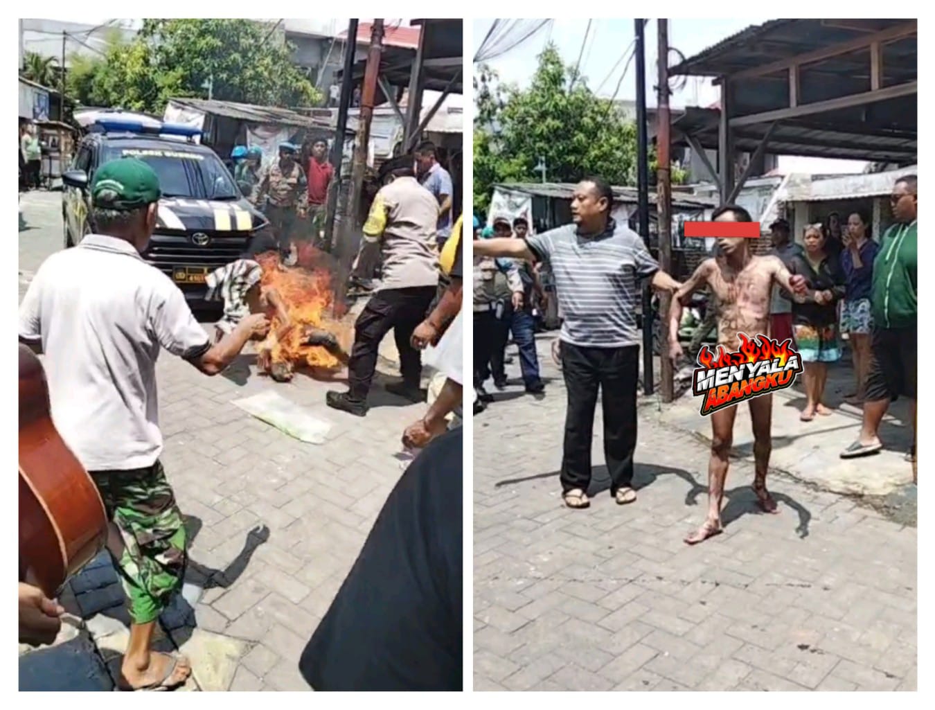 Warga yang berdatangan kemudian berhasil menangkap pelaku dan sempat memukulinya. Situasi semakin memanas ketika sebagian massa menyiramkan bensin ke tubuh pelaku dan mencoba membakarnya. Beruntung, petugas dari Polsek Gubeng bersama anggota Koramil setempat segera datang ke lokasi dan menyelamatkan pelaku dari amukan massa.