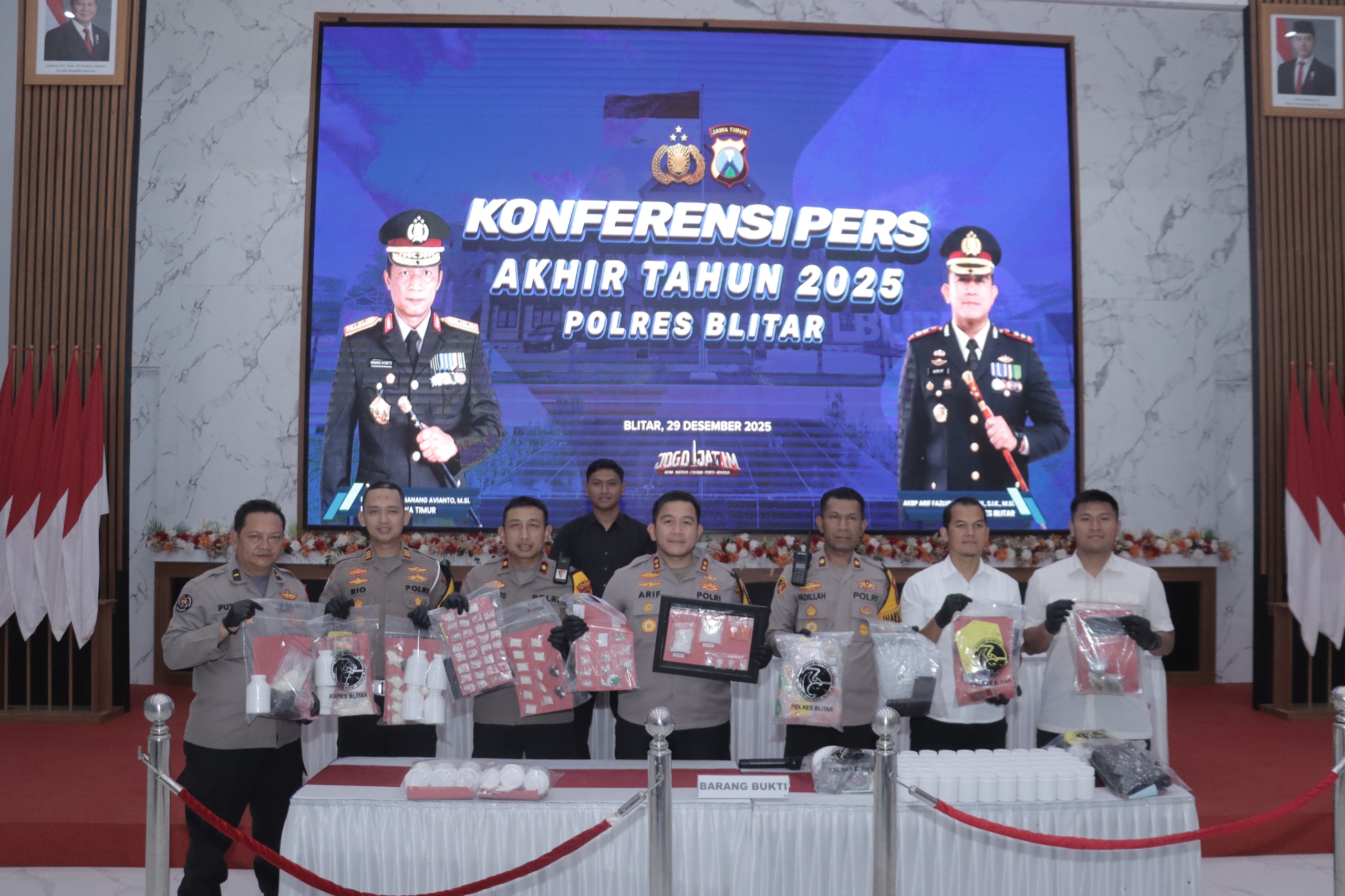 Blitar, Cakrawalajatim.news β Polres Blitar menggelar Rilis Akhir Tahun 2025 yang dirangkaikan dengan pemusnahan barang bukti hasil penindakan sepanjang tahun 2025, bertempat di Mako Polres Blitar, Senin (29/12/25).