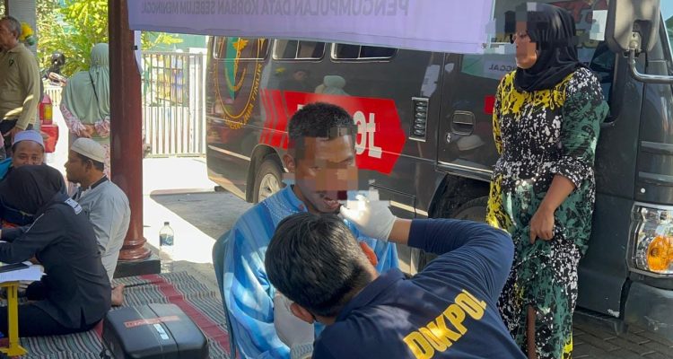 “Kami kumpulkan DNA dari keluarga dekat yang melaporkan ke posko Ante Mortem Polda Jatim,” ujar Kabid Dokkes Polda Jatim Kombes. Pol. M. Khusnan.