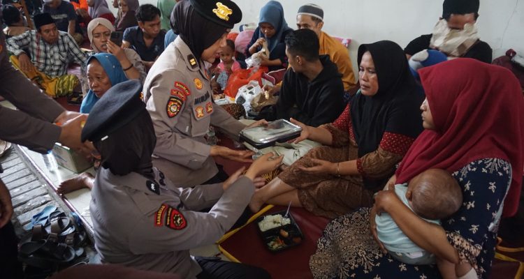 Selain memberikan trauma healing kepada keluarga korban, puluhan Polwan juga menyalurkan bantuan makanan bagi keluarga korban.