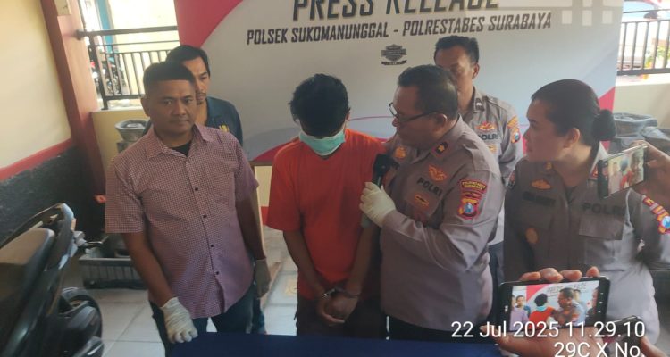 Konferensi pers yang digelar di Mapolsek Sukomanunggal tersebut dipimpin langsung oleh Kapolsek Sukomanunggal Kompol Zainul Rofiq, SH, melalui Kanit Reskrim Ipda Eko Yudha, SH, dan Kasi Humas Polrestabes Surabaya AKP Rina Shanty Dewi Nainggolan, SH, yang menjelaskan kronologi dan penangkapan pelaku.